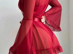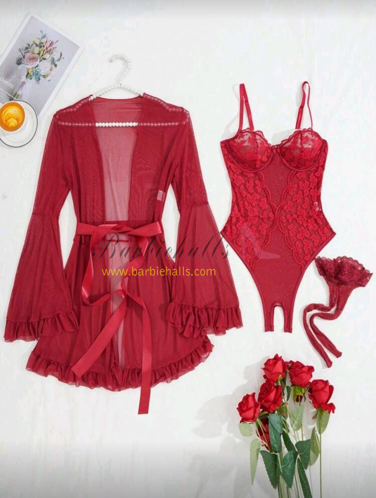 Set de 5 piezas: Body con abertura sexy + Bata + Cinturón + 1 par de medias para salir