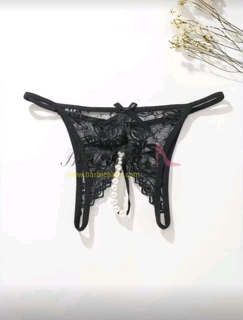 1 pieza Bragas de mujer con bordado transparente y sexy, con abertura de masaje de perlas huecas, sin costuras y de talle bajo tipo tanga, lencería y ropa de dormir sexy para el Día de San Valentín y salir.