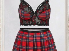 Set de 2 piezas de ropa interior sexy de mujer talla grande con diseño a cuadros y encaje