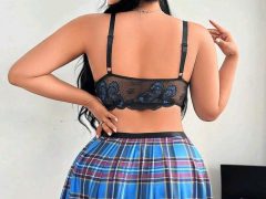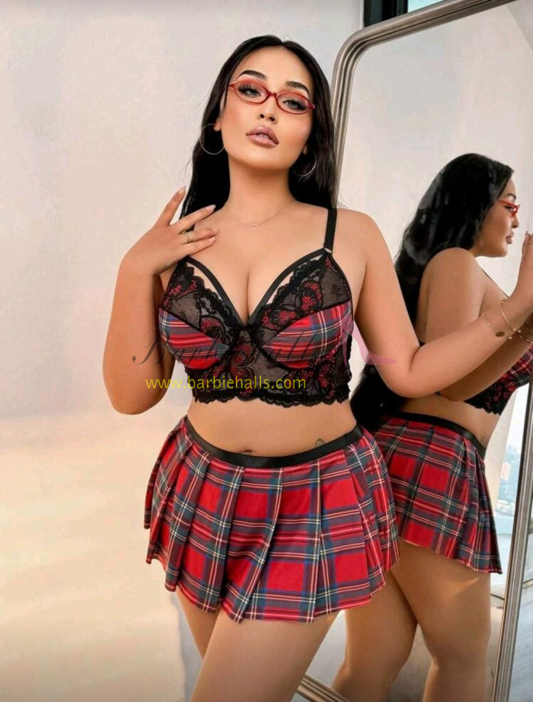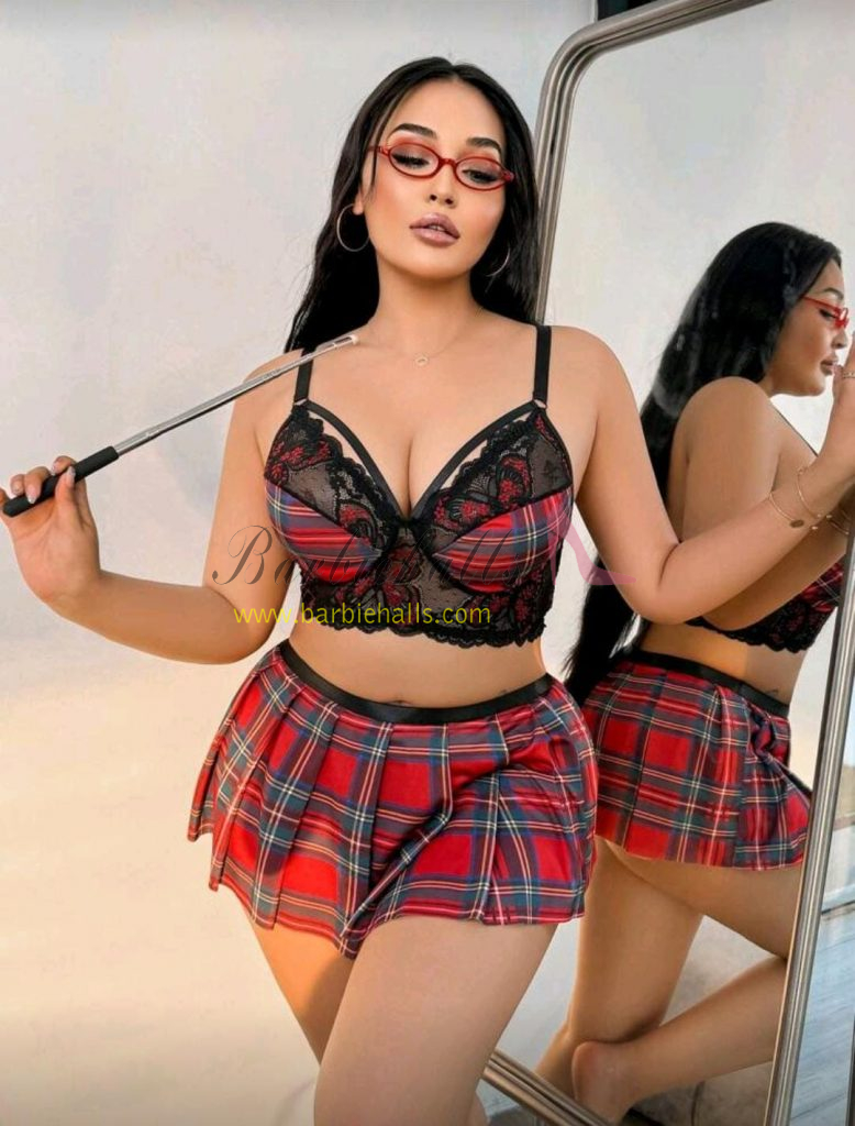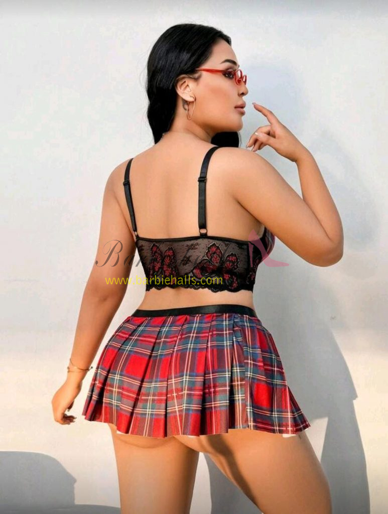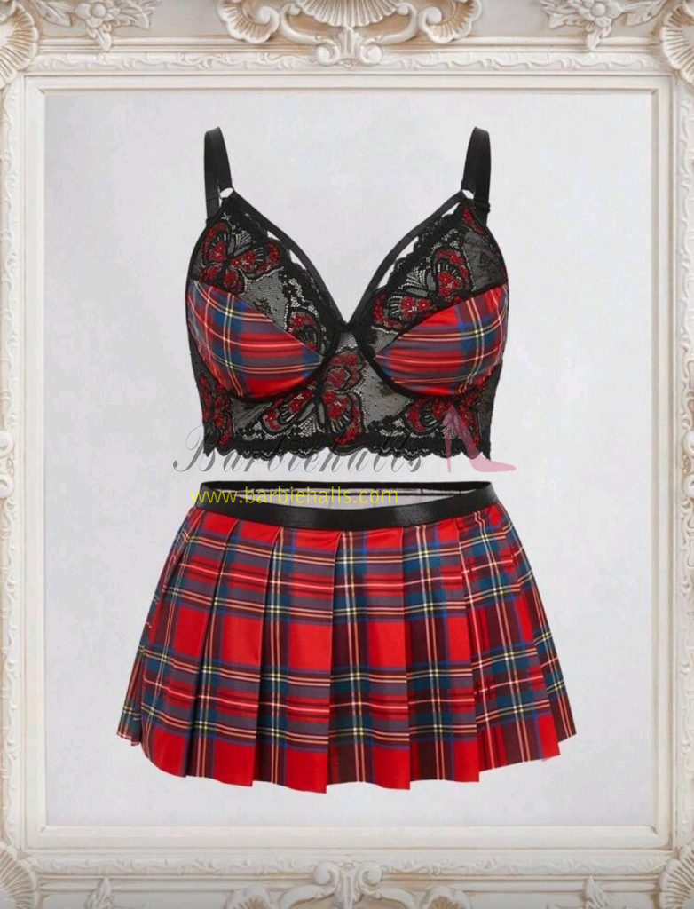 Set de 2 piezas de ropa interior sexy de mujer talla grande con diseño a cuadros y encaje