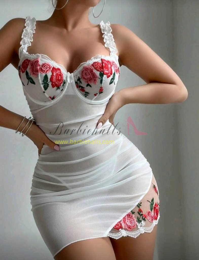 Set de 2 piezas Camisón transparente con volantes y encaje sexy, con tanga a juego